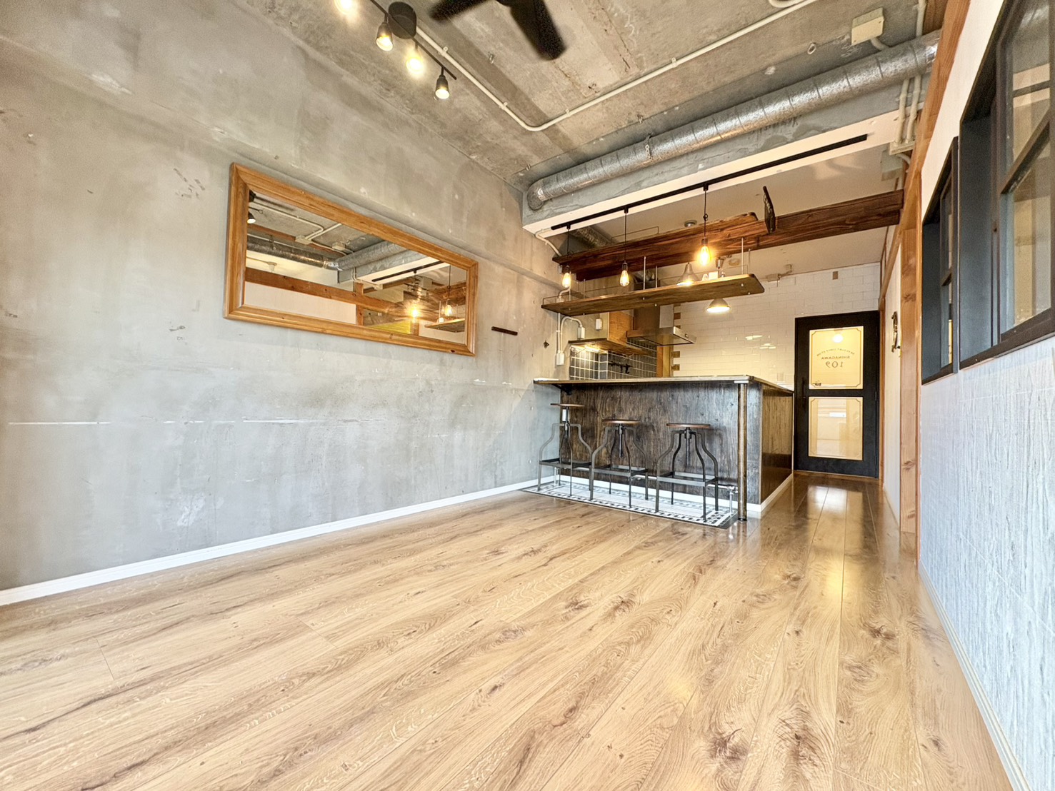 □デザイン性の高いコンクリート調の内装
